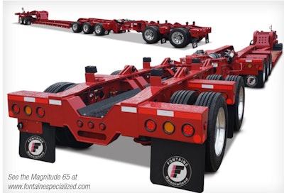 Fontaine Specialized announces its versatile and adaptable Magnitude 65 lowbed trailer, a 3+2 modular multi-purpose trailer designed and built to efficiently transport a wide array of loads with its three deck options: flat (MFLD), drop side rail (MDSR), and beam (MBMD).